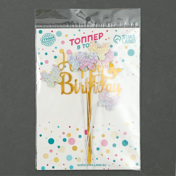 Набор топперов «С днём рождения. Бабочки» прекрасно подходит для декорации праздничного стола, создания фотозоны или в качестве элемента подарочного оформления. Его можно использовать как дома, так и в кафе или ресторане, чтобы создать запоминающуюся атмосферу.