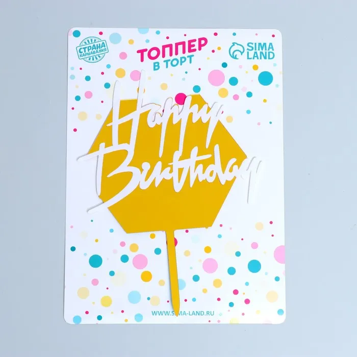 Топпер для торта «С днём рождения», бело-золотой — Характеристики