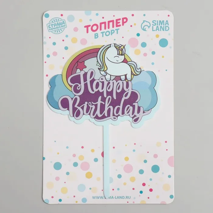 Топпер для торта «С днём рождения», единорог — Характеристики