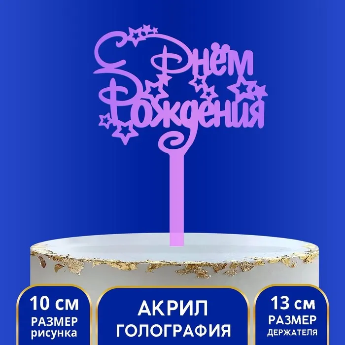 Топпер для торта «С Днём Рождения», голография, 12 см — Характеристики