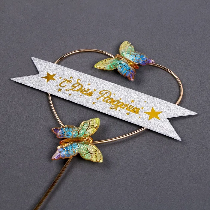 Аксессуар легко крепится на десертах, создавая атмосферу праздника и романтики. Он идеально подходит для украшения тортов на дни рождения, добавляя торжественности любому столу.