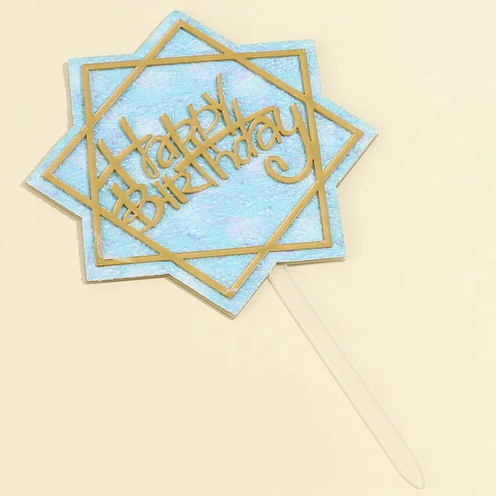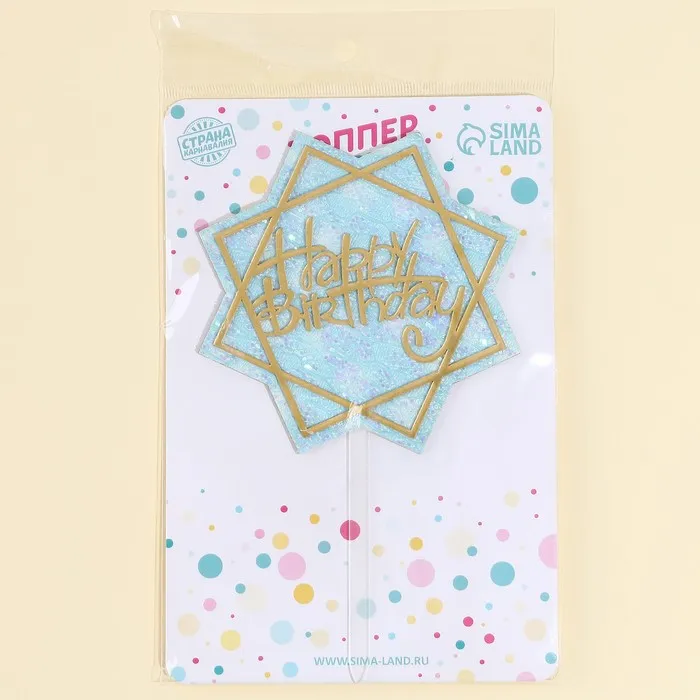 Топпер для торта «С днём рождения» с блёстками, голубой — Характеристики
