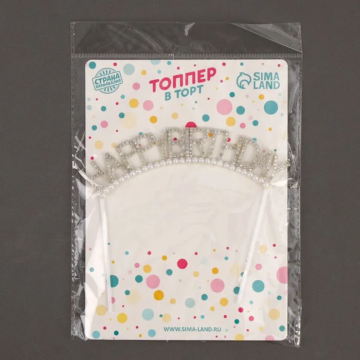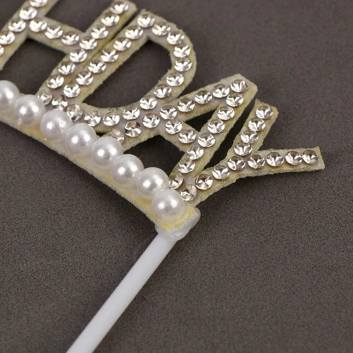 Топпер для торта «С днём рождения», со стразами и бусинами — Характеристики