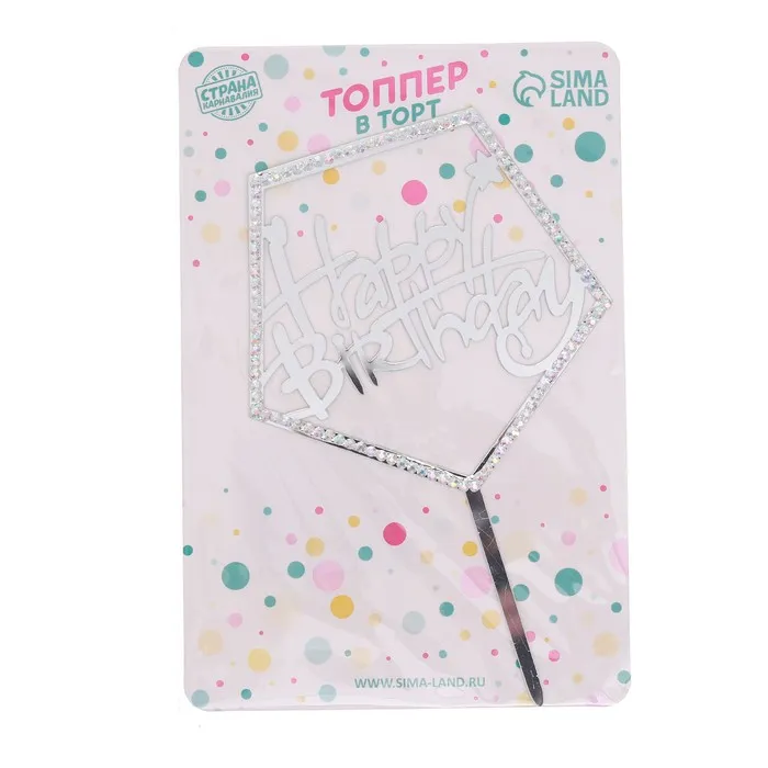 Топпер для торта «С днём рождения», со стразами, серебряный — Характеристики