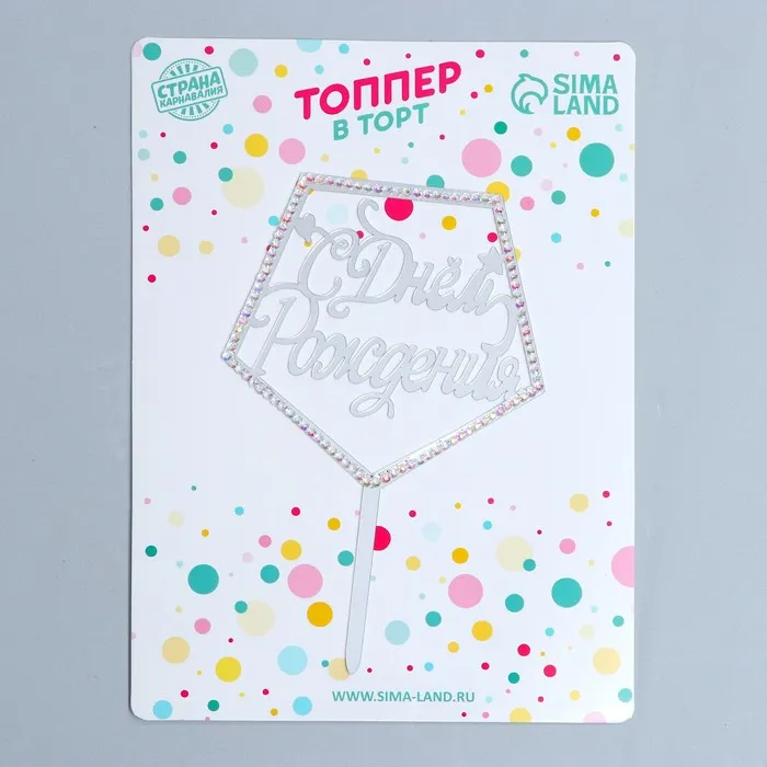 Топпер для торта «С Днём Рождения», со стразами, серебристый — Характеристики