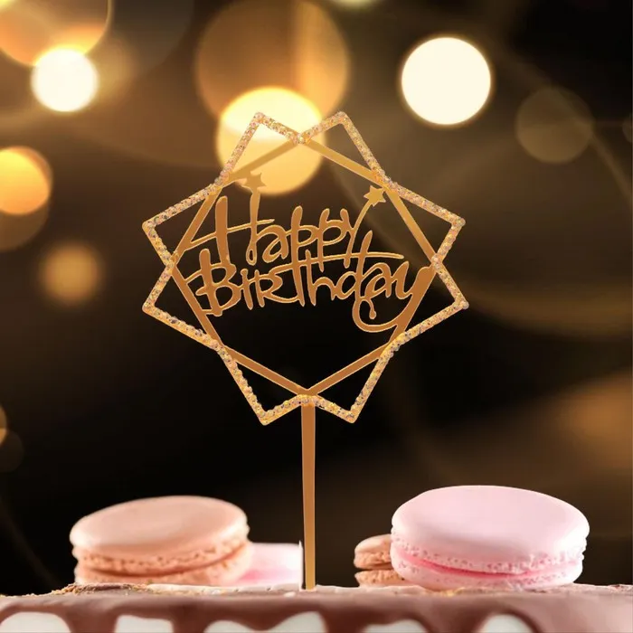 Топпер для торта «С днём рождения», со стразами, золотой — Характеристики