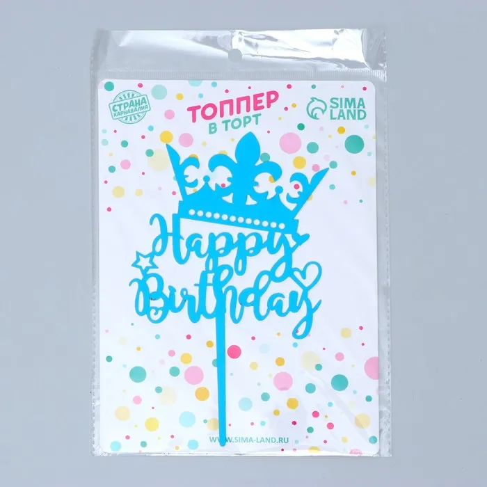 Топпер для торта «С днём рождения», светится в темноте, синий — Характеристики
