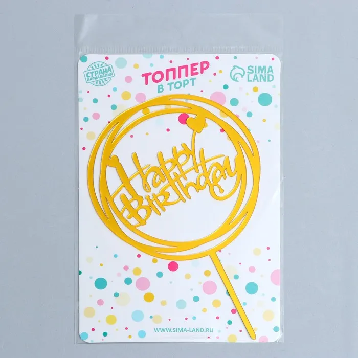 Топпер для торта «С днём рождения», золотой — Характеристики
