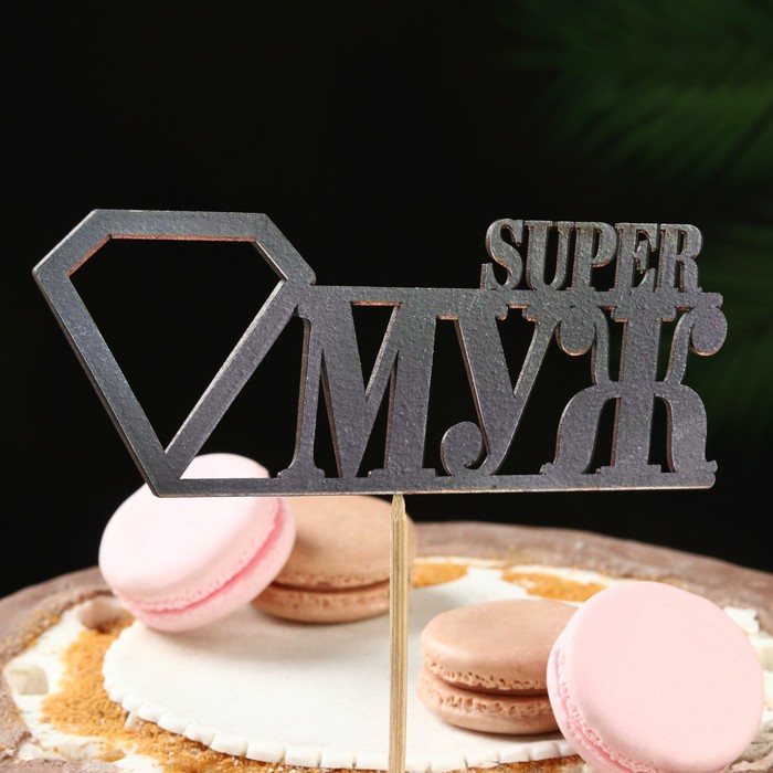 Топпер для торта «Super МУЖ», чёрный, 15×5.5 см