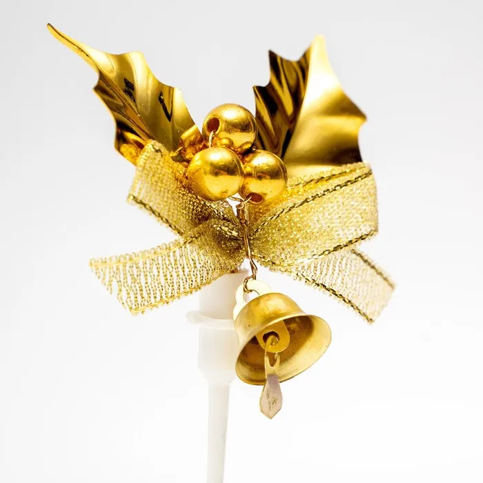 Топпер «Золотой бантик» — это простое и стильное украшение для новогоднего стола. Топпер легко закрепляется на десерте благодаря крепким держателям. Топпер подойдёт для украшения тортов, пирожных и других сладостей, создавая атмосферу праздника и веселья.