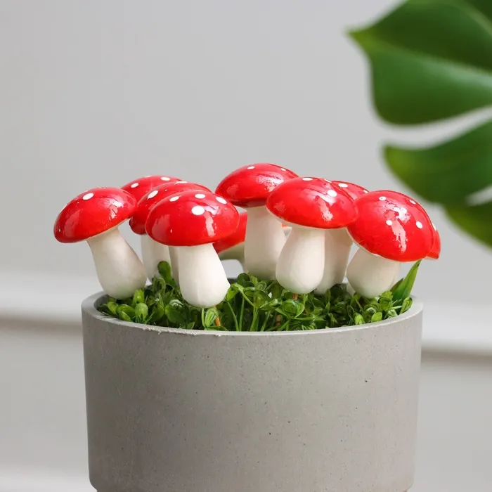 Топпер для творчества TAKE IT EASY «Грибочек мухомор» набор 10 шт., в цветы, в кашпо, 4.5×3см — Характеристики