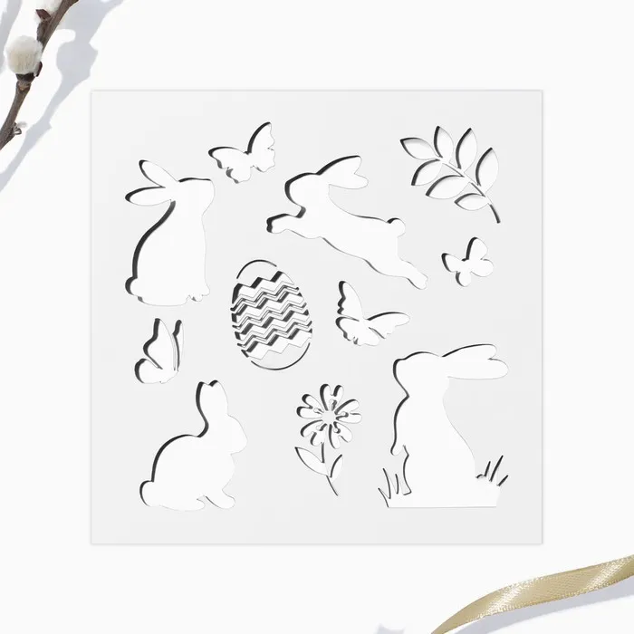 Топпер для украшения кулича «Зайки на Пасху», 5 шт., кондитерский трафарет
