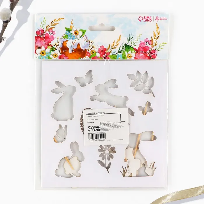 Топпер для украшения кулича «Зайки на Пасху», 5 шт., кондитерский трафарет — Характеристики