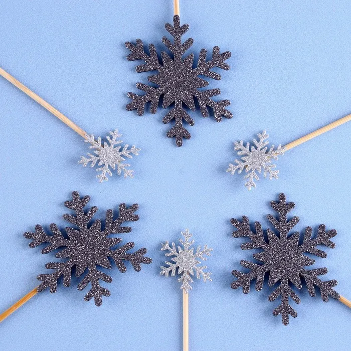 Хотите добавить изюминку в свою новогоднюю вечеринку или праздничный стол? Праздничные шпажки в форме снежинок идеально подойдут для создания атмосферного декора. Этот набор станет прекрасным дополнением к вашему новогоднему убранству. Шпажки выглядят блестяще и элегантно.