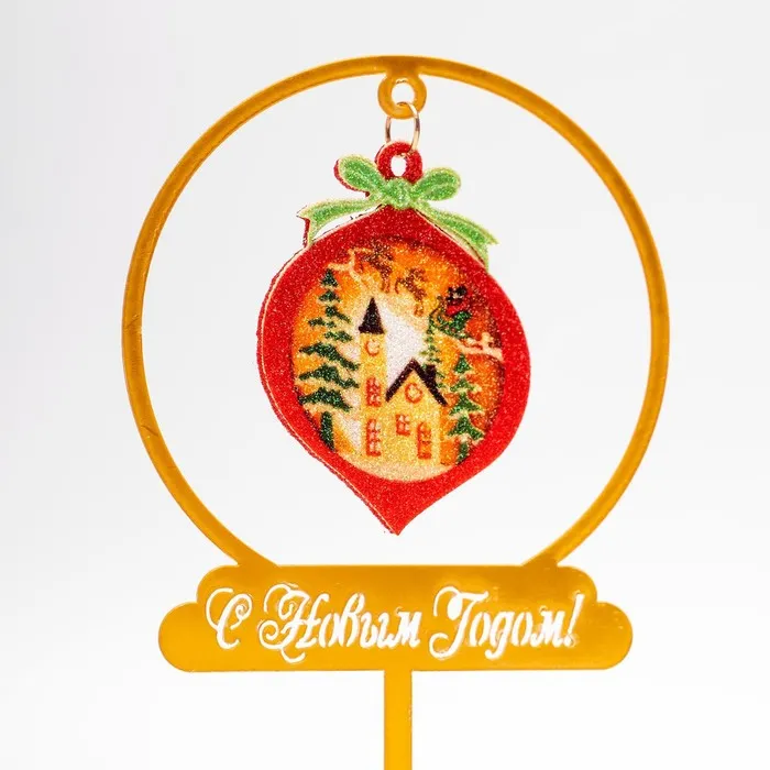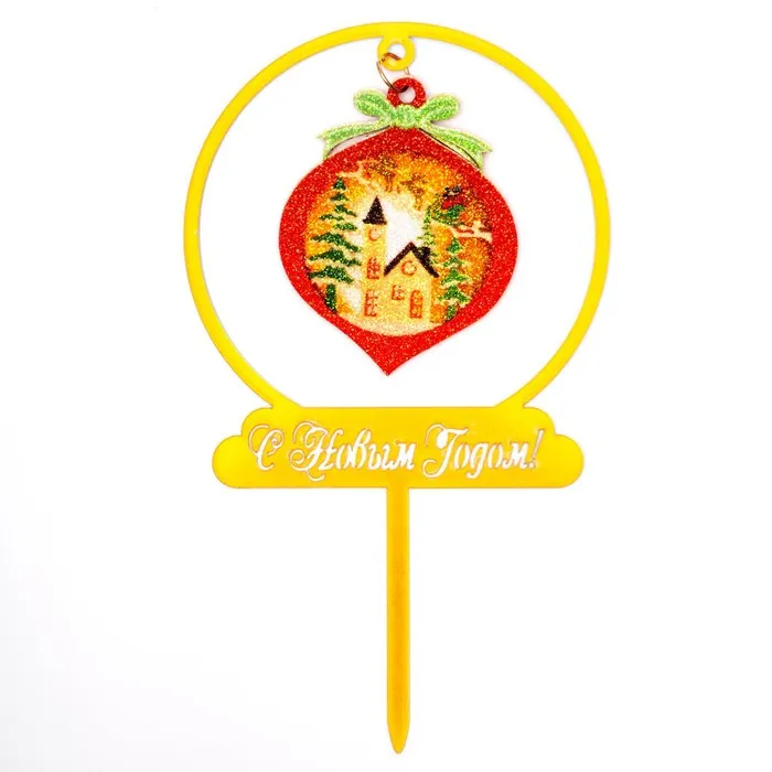 Топпер «Ёлочная игрушка» — это простое и стильное украшение для новогоднего стола. Топпер легко закрепляется на десерте благодаря крепким держателям. Топпер подойдёт для украшения тортов, пирожных и других сладостей, создавая атмосферу праздника и веселья.