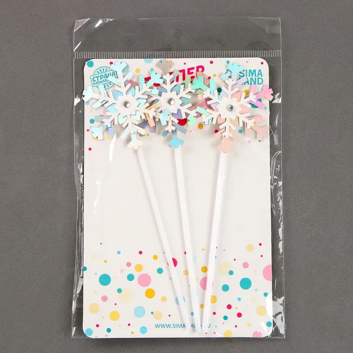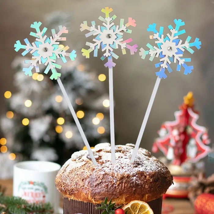 Набор топперов «Снежинки» — это простое и стильное украшение для новогоднего стола. В комплекте топперы с красочными праздничными рисунками, которые легко закрепляются на десертах благодаря крепким держателям. Топперы подойдут для украшения тортов, пирожных и других сладостей, создавая атмосферу праздника и веселья.