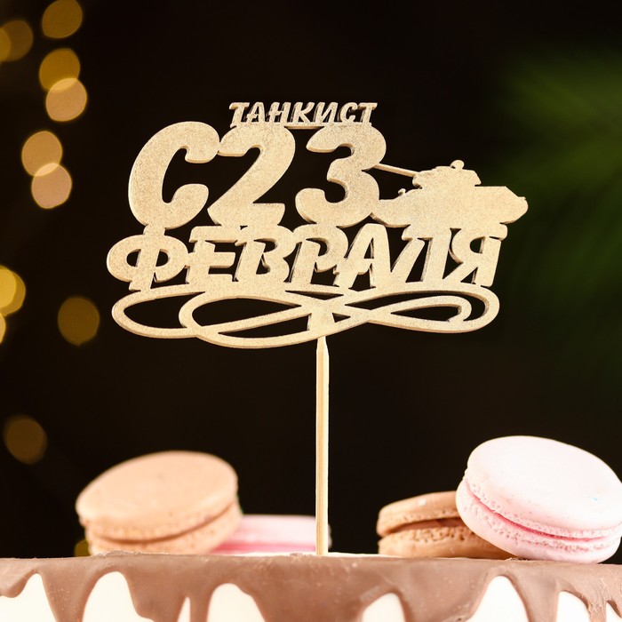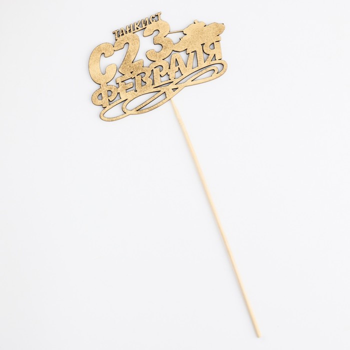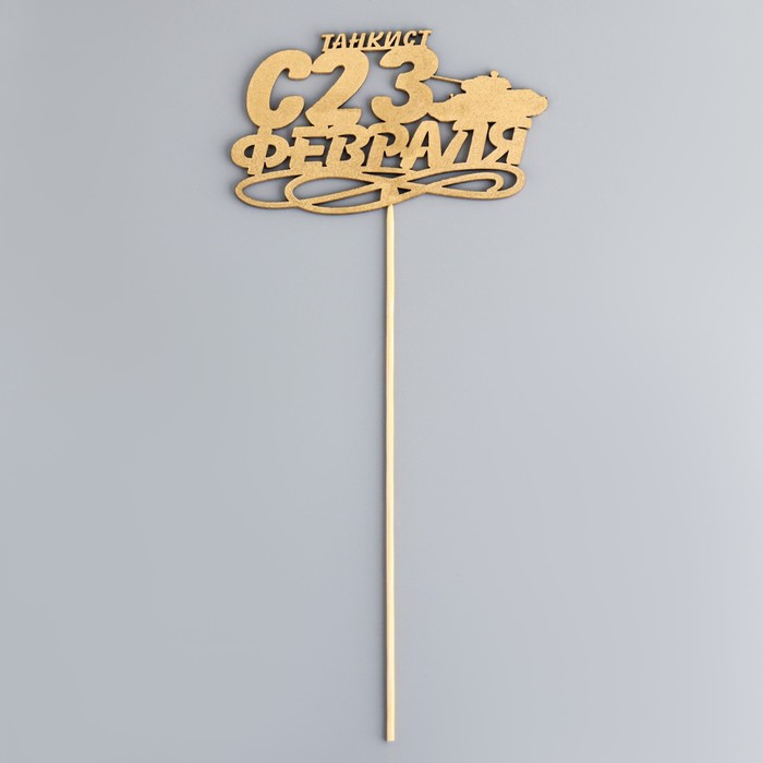 Топпер "С 23 Февраля, Танкист" на подвесе, золотой