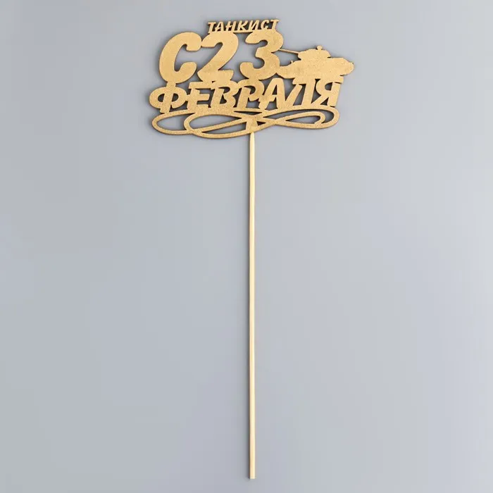 Топпер "С 23 Февраля, Танкист" на подвесе, золотой