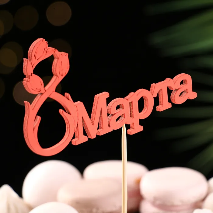 Топпер для торта «8 марта», красный, 12×7 см