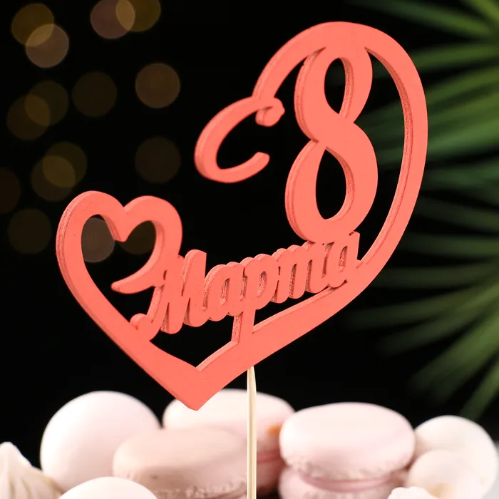 Топпер для торта «С 8 марта», красный, 12.5×11 см