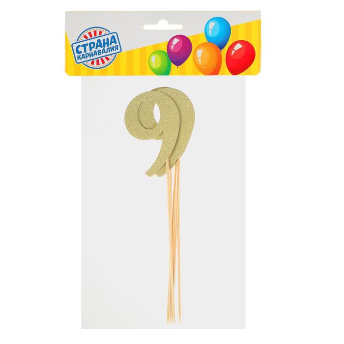 Топпер в торт «9», набор 6 шт., цвета МИКС — Характеристики