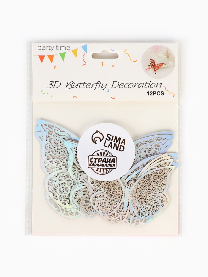 Топперы для декора «Бабочки», 12 штук, голография, серебряный — Характеристики