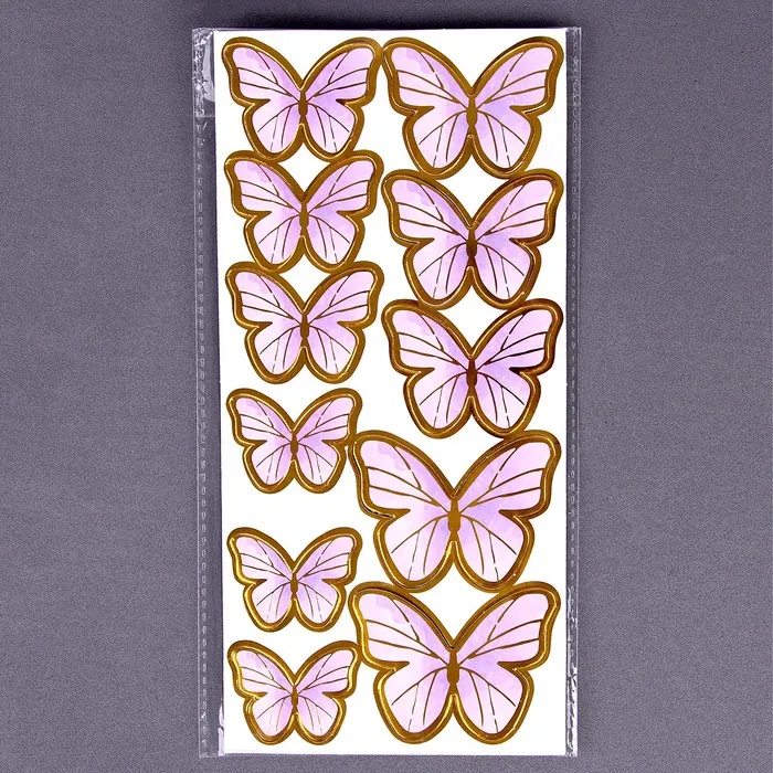 В набор входит 11 бабочек разного размера, 11 проволочек и 11 клеевых точек.