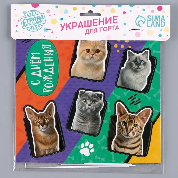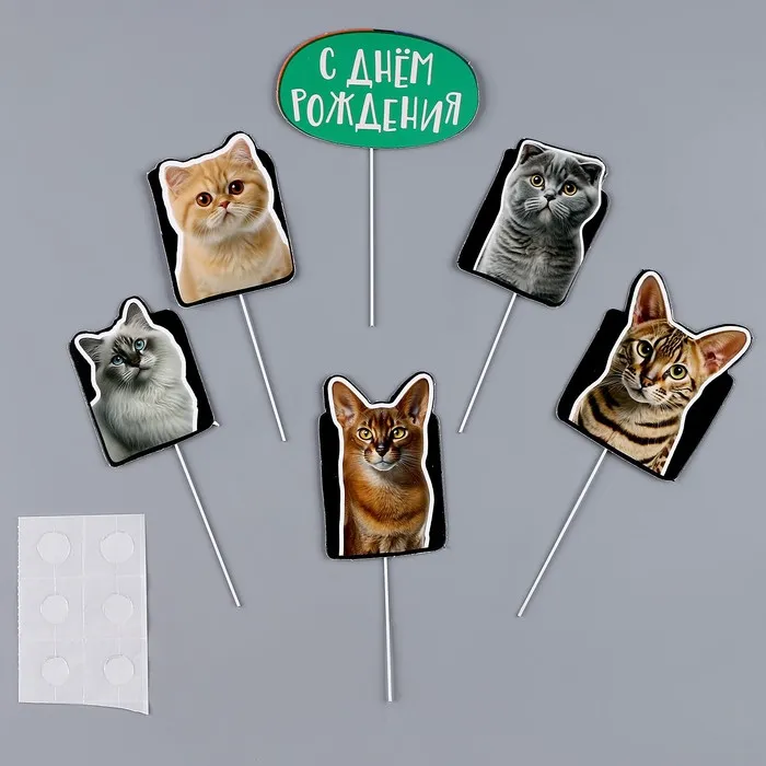 Топперы для торта «Котики», картон на подложке, с проволокой — Характеристики