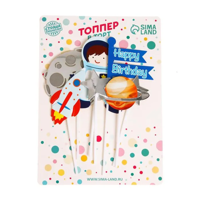 Топперы для торта «С днём рождения. Космос», 7 шт. — Характеристики