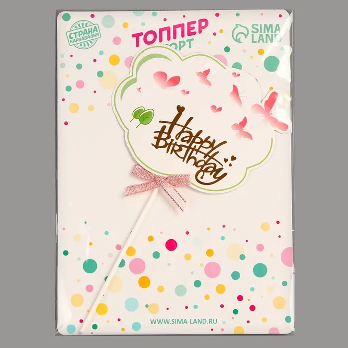 Топперы для торта «С днём рождения», с бантиком — Характеристики