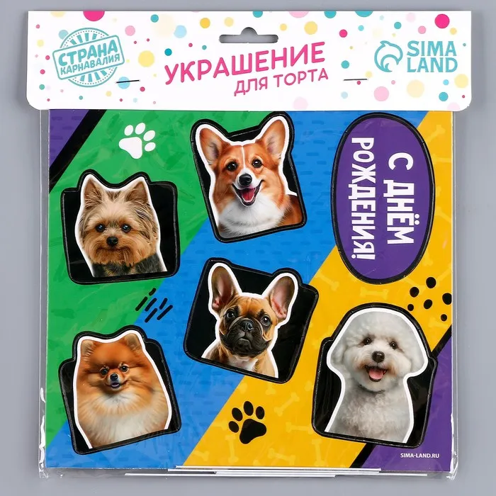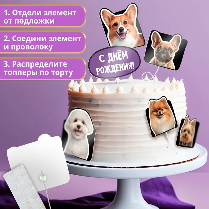 Топперы для торта «Собачки», картон на подложке, с проволокой — Характеристики