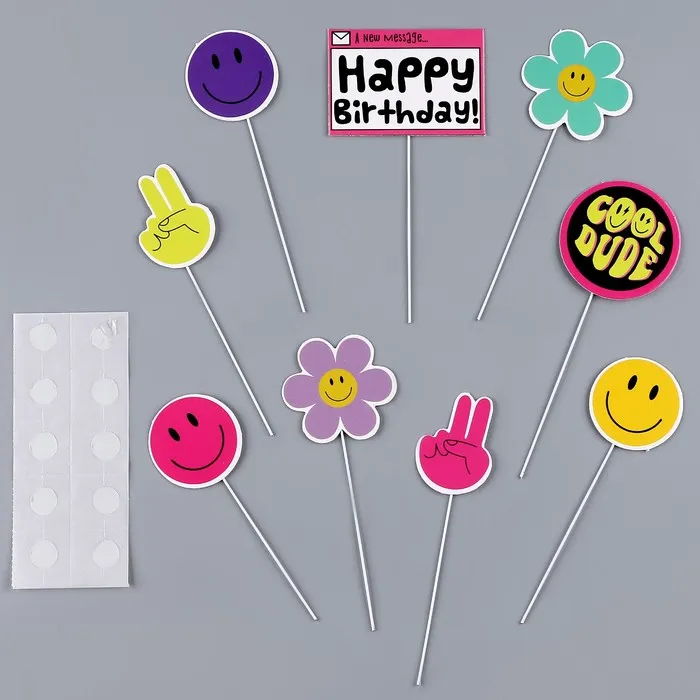 Топперы для торта «Стикеры», картон на подложке, с проволокой — Характеристики