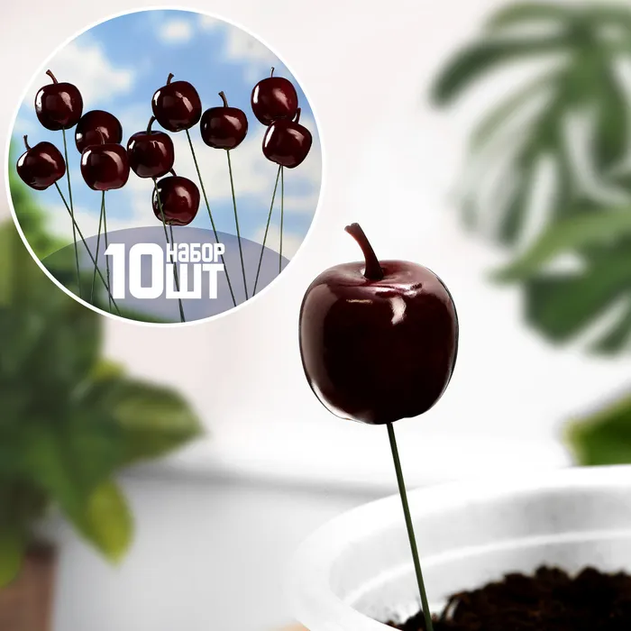 Топперы для творчества TAKE IT EASY «Яблоко», набор 10 шт., в цветы, кашпо, 3 см, длина 25 см — Характеристики
