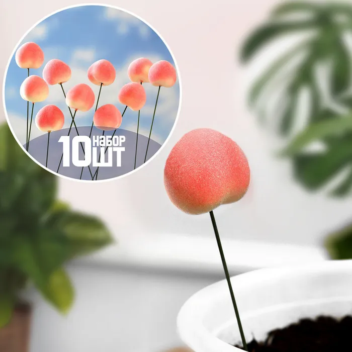 Топперы для творчества TAKE IT EASY «Персик», набор 10 шт., в цветы, кашпо, 3 см, длина 25 см — Характеристики