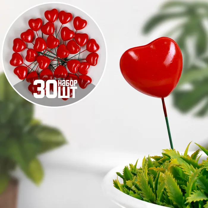 Топперы для творчества TAKE IT EASY «Сердечко», набор 30 шт., в цветы, кашпо, красное, 3×1.5×2 см — Характеристики