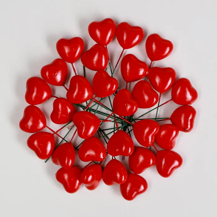Сердечки декоративные, набор 50 шт., 3,2 см, цвет красный