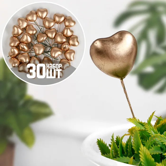Топперы для творчества TAKE IT EASY «Сердечко», набор 30 шт., в цветы, кашпо, золотистое, 3×1.5×2 см / — Характеристики