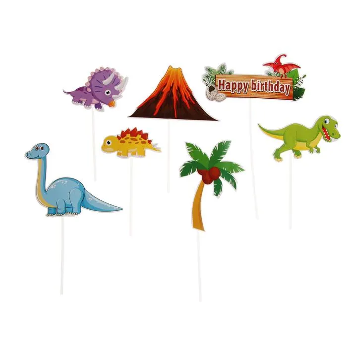 Набор топперов «С днём рождения. Динозавры» — это яркое и весёлое украшение для детского праздника. С его помощью легко создать атмосферу приключений, добавив на торт фигурки любимых динозавров. Набор включает 7 разноцветных топперов, которые станут отличным акцентом для дня рождения.