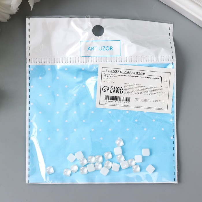 Топсы для творчества пластик «Квадрат», перламутр, набор 30 шт., 0.5 см — Характеристики