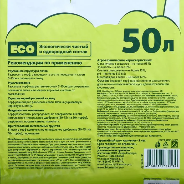 Торф верховой раскисленный «БиоМастер» с добавлением известняковой муки для нейтрализации кислотности применяется для обогащения и дренирования почвы, укрытия растений на зиму, мульчирования с целью сохранить влагу и защитить корневую систему от вымерзания.