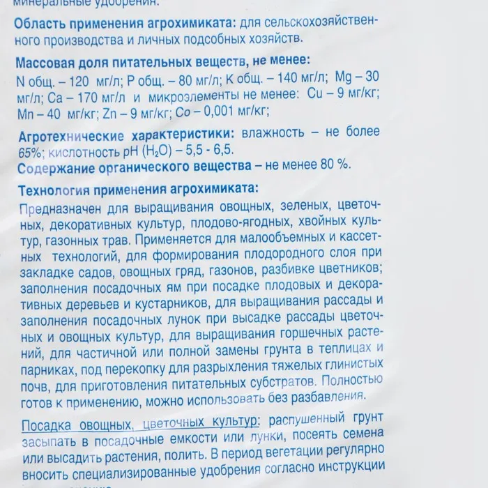 Торфяной субстрат Агробалт, марка Агробалт-С состоит из верхового торфа с добавлением комплекса минеральных удобрений и увлажняющим реагентом.Это универсальный субстрат для рассады, цветущих растений, овощных культур, растений для клумб. Отлично подходит для профессионального выращивания фиалок и других цветущих растений. Также данный субстрат можно использовать в качестве основы для выращивания адениумов. Можно использовать как в закрытом, так и открытом грунте для улучшения структуры почвы. ПРЕИМУЩЕСТВА ПРИМЕНЕНИЯ ТОРФА АГРОБАЛТ, МАРКА АГРОБАЛТ-С:готовый субстрат для растений;обогащен минеральным удобрением, которое растворяется в воде. NPK 90-60-110 мг/л;в составе микроэлементы: цинк, марганец, бор, медь, кобальт;воздухопроницаемый и влагоемкий;структура торфа 0-20 мм;не содержит патогенных бактерий и грибов;может использоваться в смеси с перлитом и другими добавками
