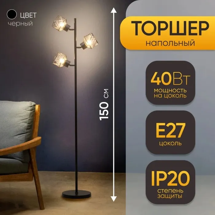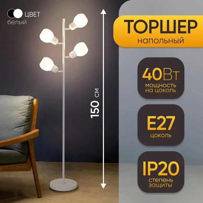 Торшер «Клюшка» 80 × 165 см, 10 Вт, алюминий, пластик, свечение тёплое белое — Характеристики