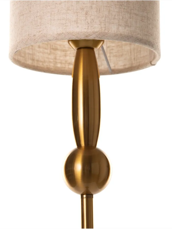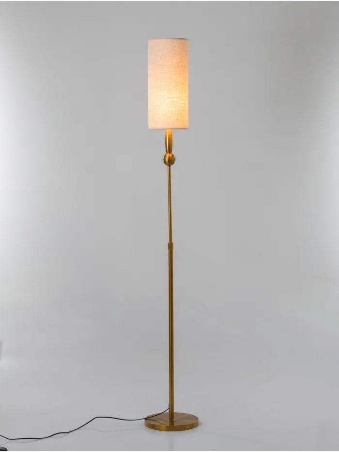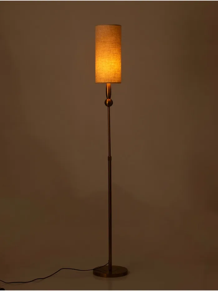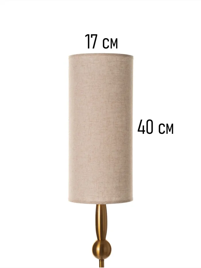 - Элегантный дизайн: латунное основание и бежевый абажур из пластика и текстиля делают торшер визуально привлекательным и уместным в различных интерьерах. Цилиндрическая форма абажура подчеркивает стиль и характер изделия.