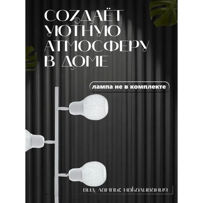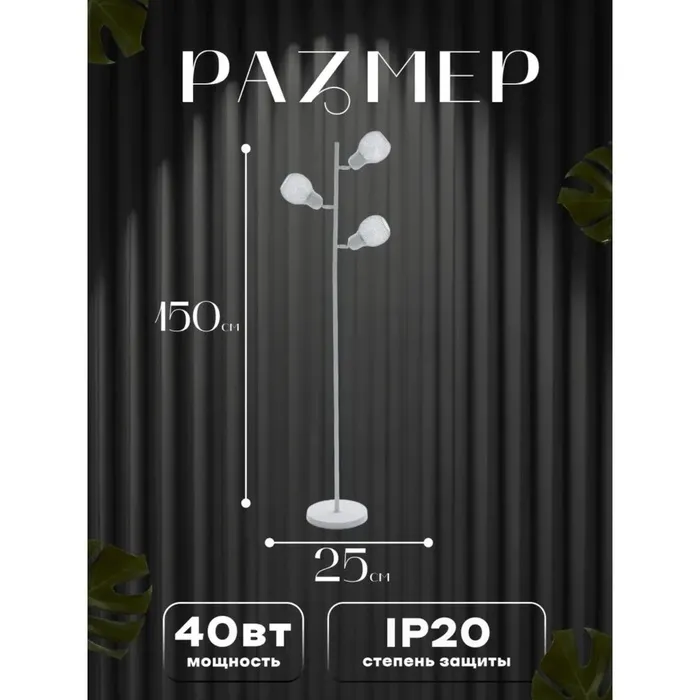 Торшер напольный с плафонами BayerLux «Эдиссон», 3×Е27, 40 Вт, белый, 25×25×150 см — Характеристики