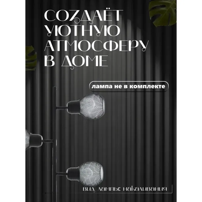Торшер напольный с плафонами BayerLux «Эдиссон», 3×Е27, 40 Вт, чёрный, 25×25×150 см — Характеристики