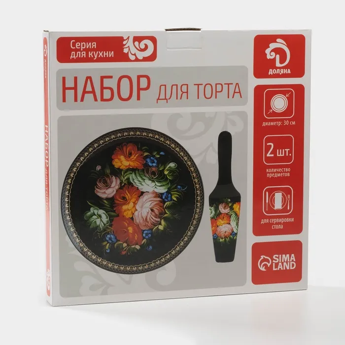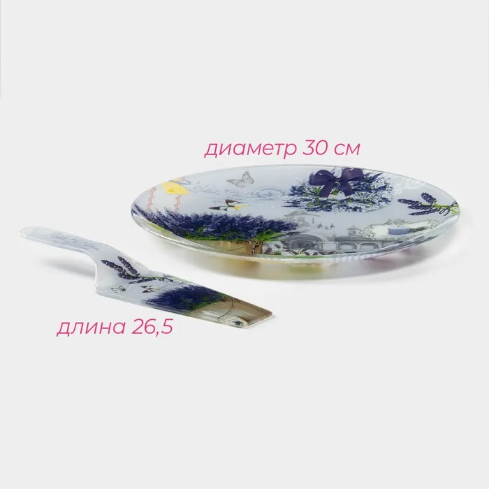 Тортовница Доляна «Лаванда», d=30 см, с лопаткой 26.5×7 см, стекло, фиолетовая — Характеристики