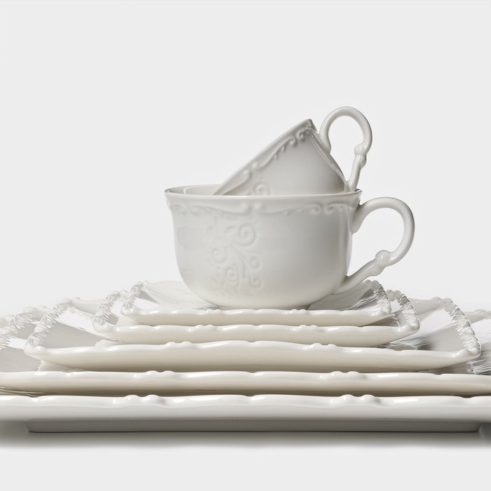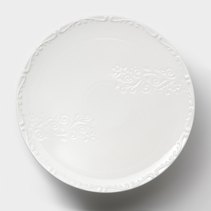 Тортовница выполнена из высококачественного фарфора, что обеспечивает ей долговечность и устойчивость к повреждениям. Она отличается рельефным дизайном, который придает изделию особую изысканность, а отсутствие рисунка подчеркивает чистоту и простоту линий.