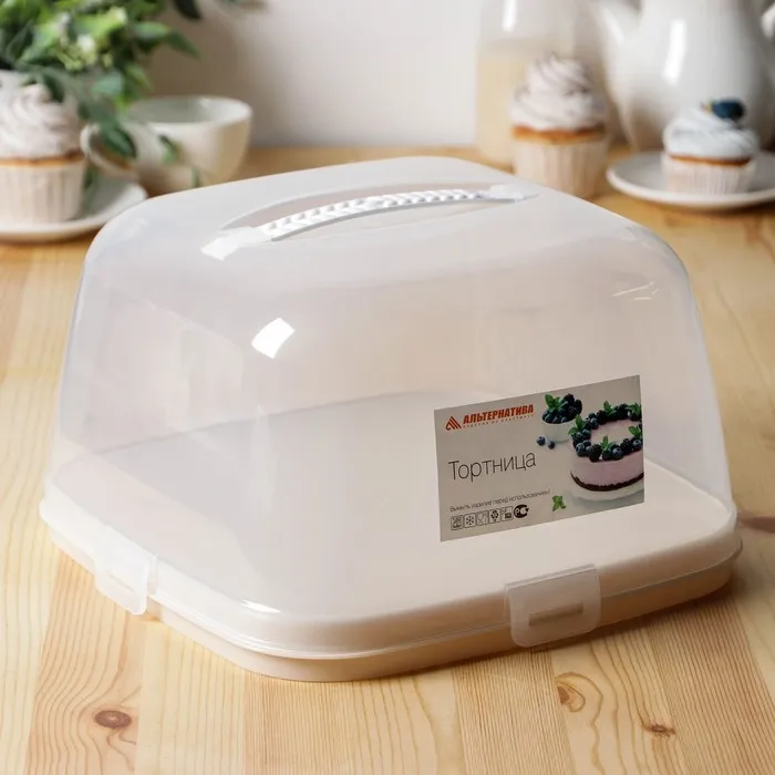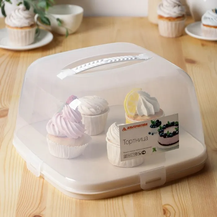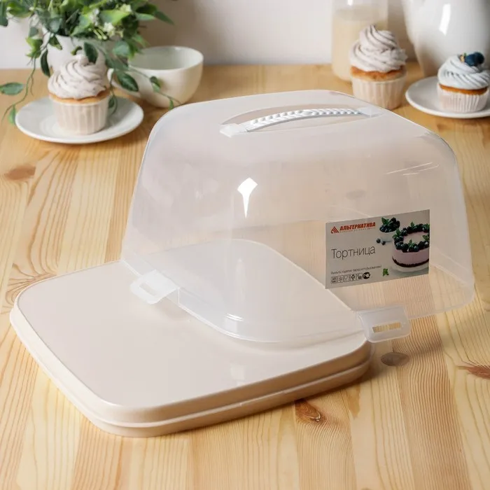 Тортовница с крышкой Альтернатива, 28.5×28.5×17.5 см, пластик, бежевая — Характеристики