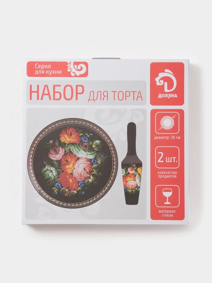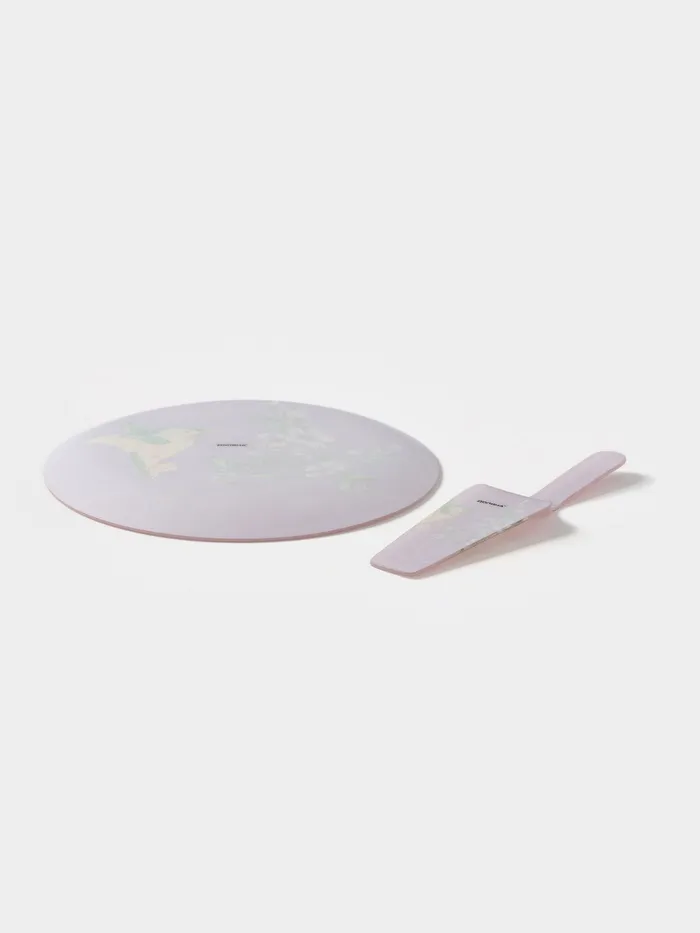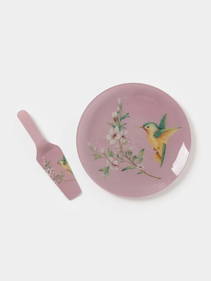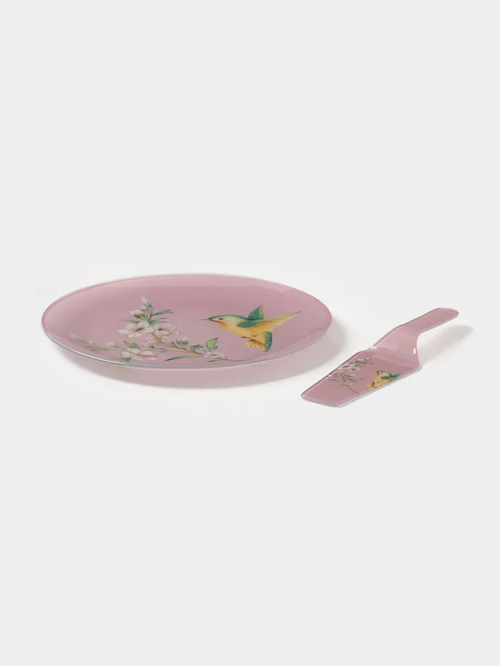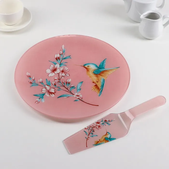 Тортовница с лопаткой Доляна «Колибри», d=30 см, лопатка 26.5×7 см, стекло, нежно-розовая — Характеристики