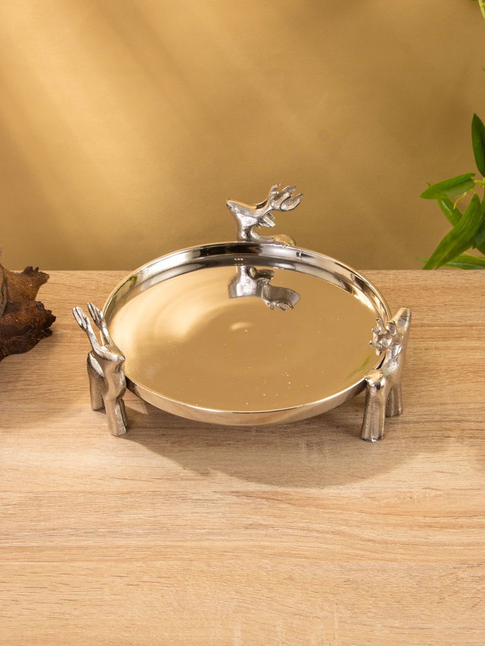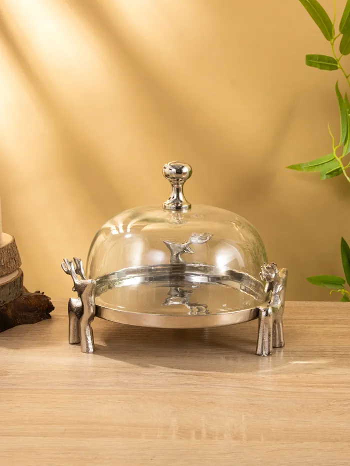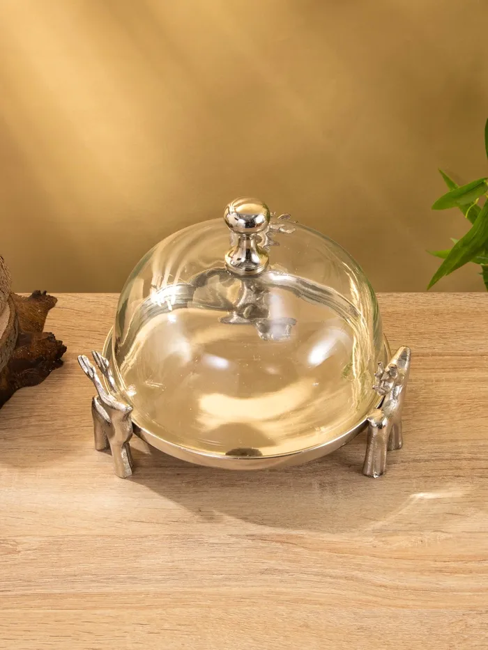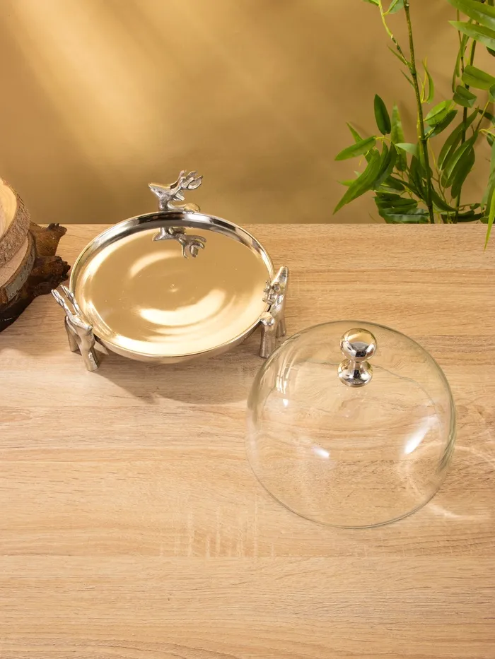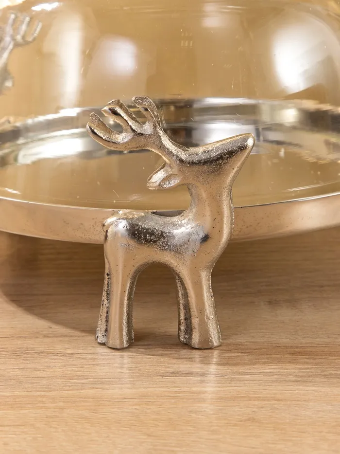 Тортовница со стеклянной крышкой «Олени», 23×23×20 см, алюминий